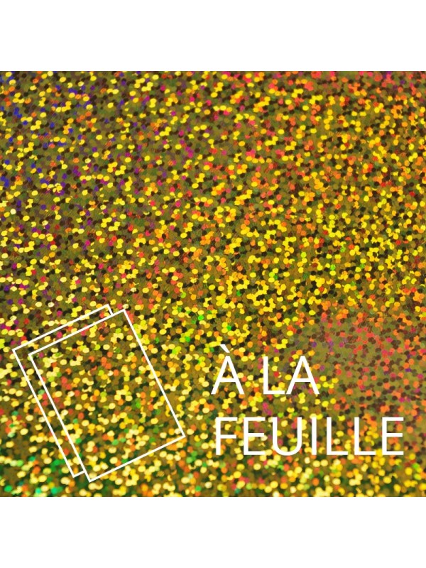 Feuilles thermocollantes « hologramme » or e pour une application à chaud sur textile. Ce film est idéal pour la customisation et la décoration textile.