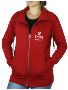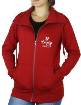 Fitted women's jacket, two front pockets and wide stand-up collar with cords. 65% cotton and 35% polyester COUNTRY DANCER front and back print in white print