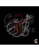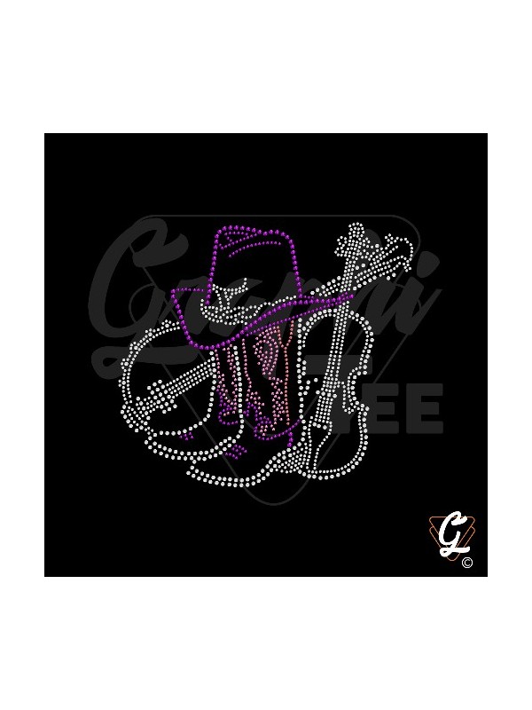 T-shirt femme col en pointe, 100% coton peigné (200gr/m2)Motif devant Bottes avec arabesques en strass et clous. Trois couleurs possibles pour ce modèle de tee-shirt : noir, blanc et rouge. Ainsi que quatre couleurs de strass possibles : Violet, Turquoise, Rouge, Doré. La taille 3XL (ou T6 ) est...