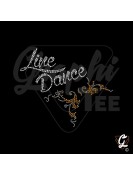 Women's t-shirt round neck wide, cut in the shape of a circle with the bottom of the t-shirt slightly rounded. Loose, fluid T-shirt, very comfortable to wear. The rhinestone and sequin pattern represents a guitar and a hat with Country music.