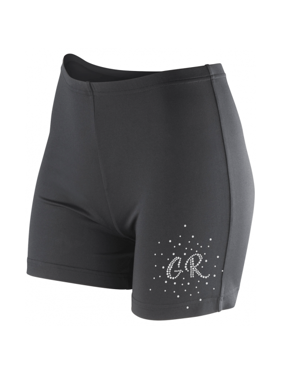These beautifully designed high tech fitness shorts use the brand new brushed Softex carbon fabric, which features ultra-soft, elastic and comfortable properties, with quick drying. It is embellished with a small rhinestone GR logo for Rhythmic Gymnastics enthusiasts.