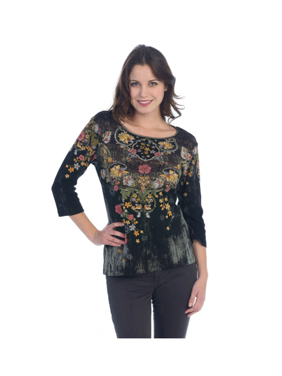 T-shirt femme à manches trois quart tout imprimé sur le thème western cowgirl. T-shirt américain, donc attention ce t-shirt taille grand !