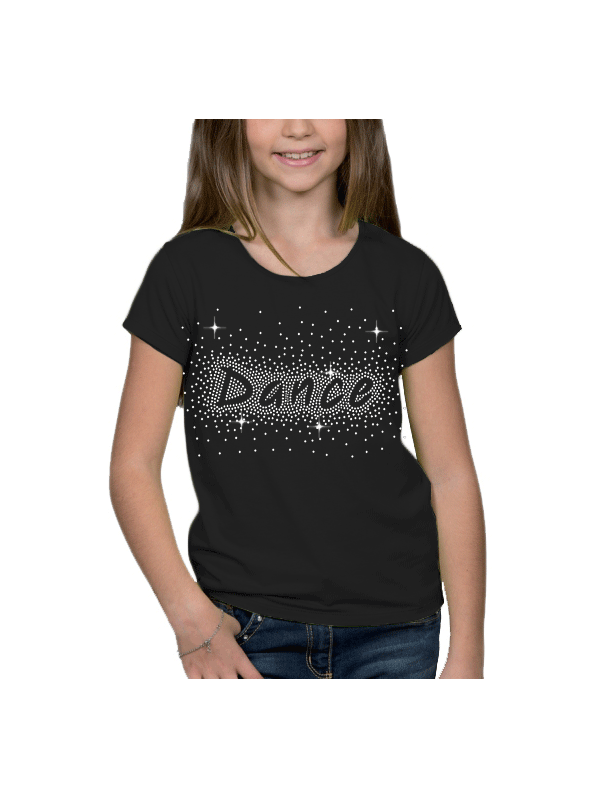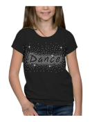 Tee-shirt fillette moulant col rond avec le mot dance en strass devant