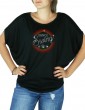 In StockTee-shirt femme col rond large, coupe chauve souris 65% polyester, 35% viscose (125gr/m2) T-shirt ample et très agréable à porter. Marquage country en strass sur le devant du tee shirt