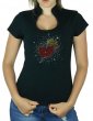 In StockT-shirt woman neckline style "Omega" with a small mandarin collar, 95% cotton and 5% elathanne. Rhinestone pattern in front of a country boot with the American flag.
