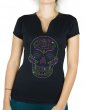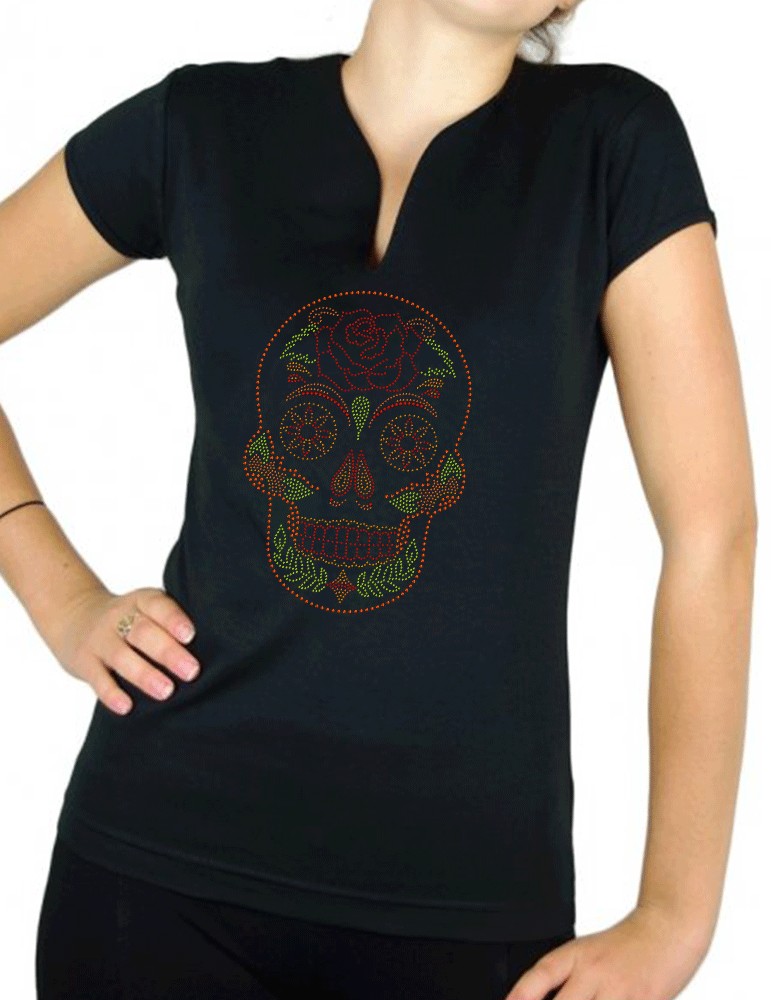 Motif représentant une Tête de mort floral Mexicaine en strass et clous.