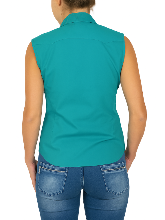 Découvrez un style élégant et un confort avec cette Chemise Femme Sans Manche – l'ajout parfait à votre garde-robe estivale. Nous avons conçu cette blouse sans manches dans un tissu léger et agréable, elle se distingue par sa belle couleur turquoise vive qui apporte une touche de fraîcheur à la tenue, alliant une coupe décontractée à une esthétique sophistiquée , Son col classique et sa fermeture à boutons pression argentés lui donnent un style moderne et pratique.Les deux poches poitrine à rabat ajoutent une note casual tout en offrant une pointe de fonctionnalité.