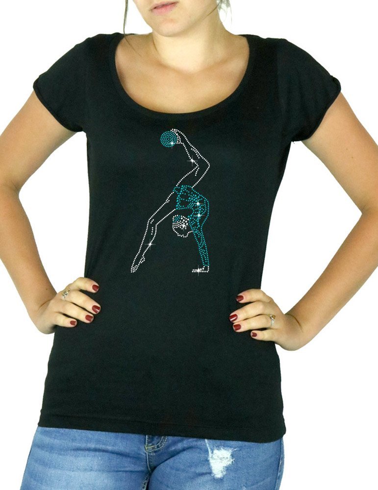 Tee shirt paillettes GRS Gymnastique, personnalisé avec un motif en strass "engin" ballon.