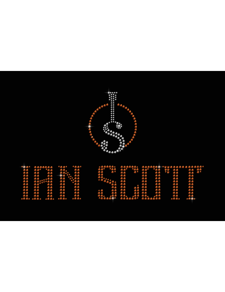 T-shirt homme col en V de qualité supérieur, impression devant et dans le dos en strass à l'effigie du chanteur Country Rock Ian Scott.