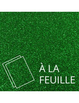 DisponibleFeuilles thermocollantes vert pailleté pour une application à chaud sur textile. Ce film est idéal pour la customisation et la décoration textile. Une application simple et facile! découpez votre modèle puis appliquez le fer a repasser. Dimensions : 15 x 20 cm.