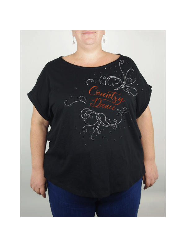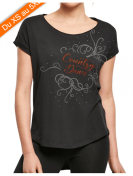 Le "Loose Fit" est un tee shirt "facile à porter" avec une coupe ample. Le décolleté est féminin sans être trop profond. Le tee shirt est imprimé d'un capteur de rêves en strass. Ce modèle strass est aussi disponible sur la coupe chauve souris