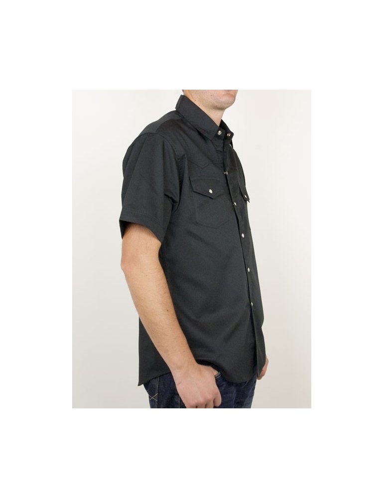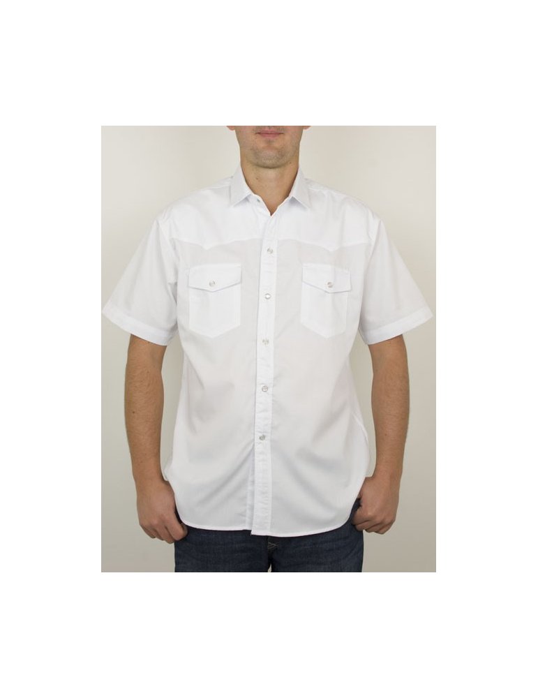 Chemise homme manches courtes, coupe western avec empiècement poitrine et dos. Deux poches plaquées a la poitrine. Fermeture boutons nacrés. 65% Coton, 35% Polyester. Ce produit est une chemises personnalisable "fabrication spécial", aucun retour n'est possible.